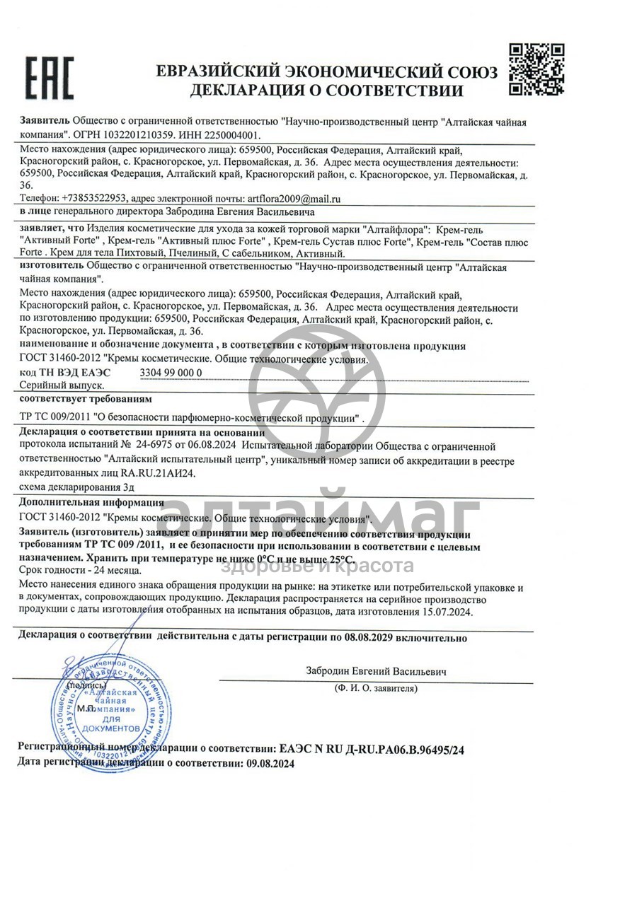 • В карточке товара находится: описание, инструкция по применению, отзывы и сертификаты.